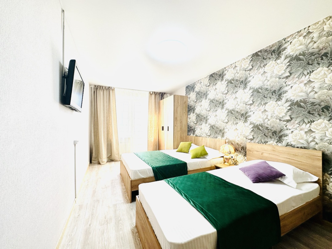 Уютная комната в 3-комнатной квартире в Центре города с развитой инфраструктурой. В апартаментах есть вся необходимая техника и мебель, Wi-fi, постельное белье, полотенца и посуда, т.е. все то, что необходимо для комфортной жизни гостей и обусловлено своей функциональностью: для бизнес-путешественников с деловым визитом; в командировку; для семейных пар и с детьми; или просто провести романтический вечер.
