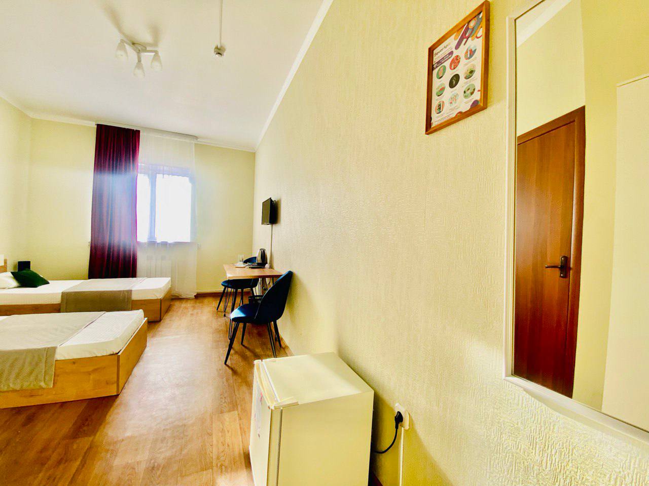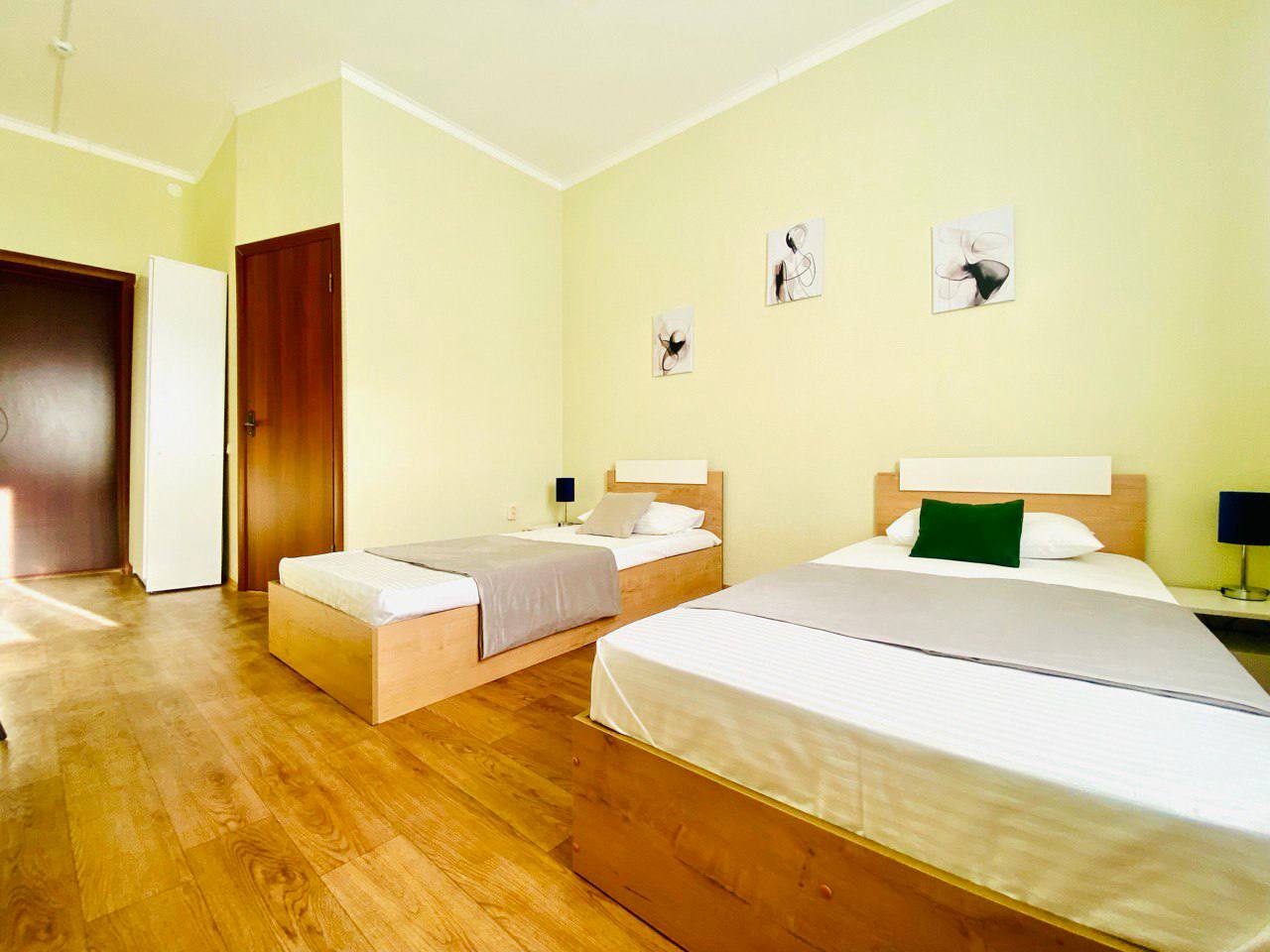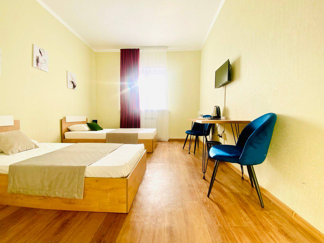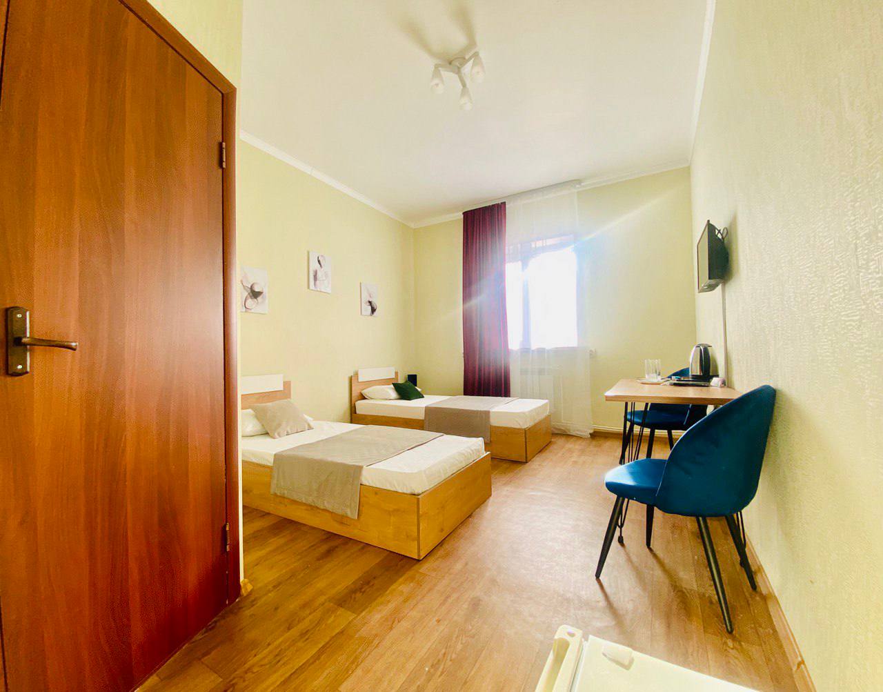 Уютный номер с 2 односпальными кроватями, со всем необходимым для проживания и санузлом.