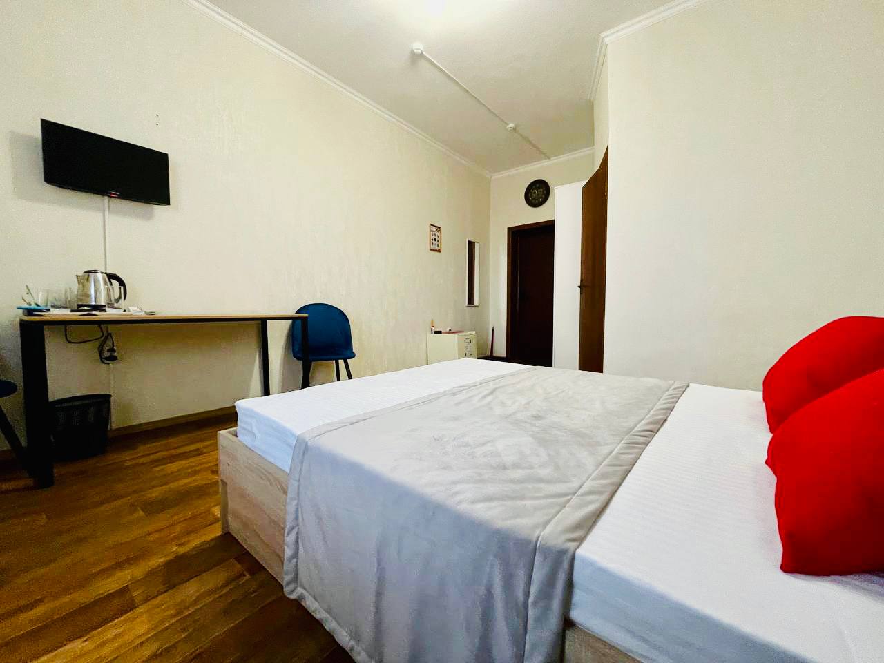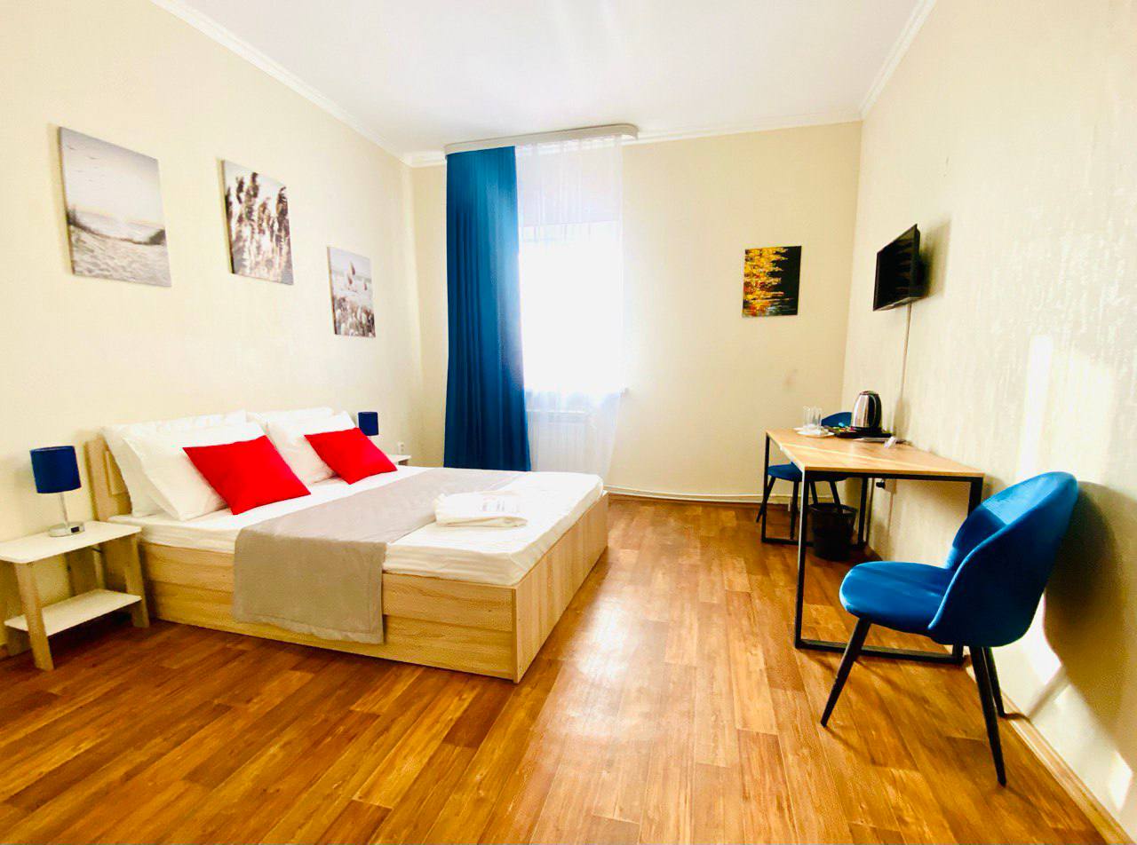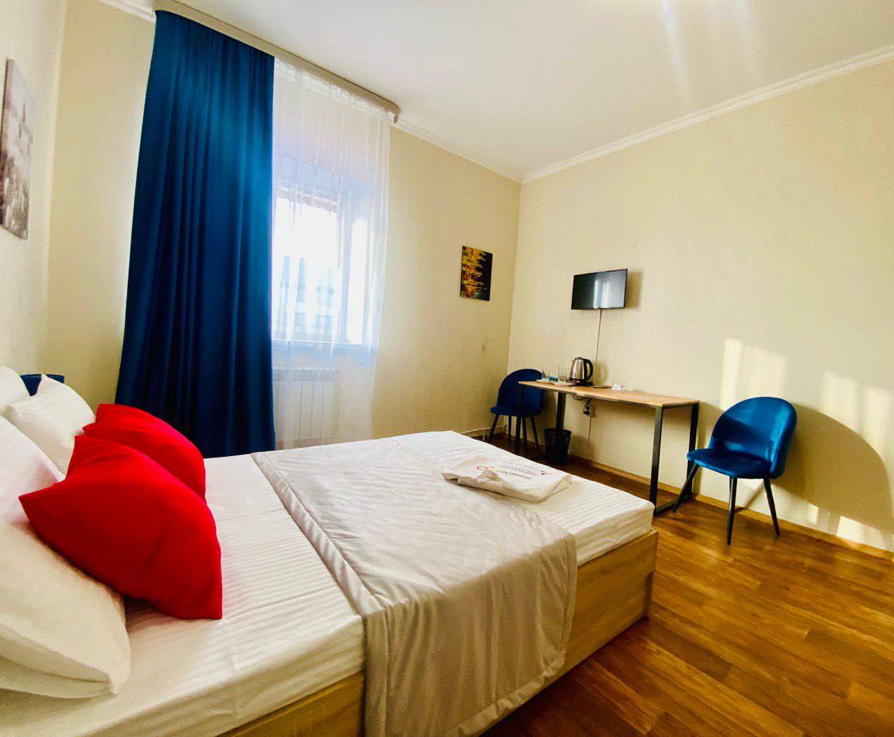 Уютный номер с двухспальной кроватью и всем необходимым для проживания.