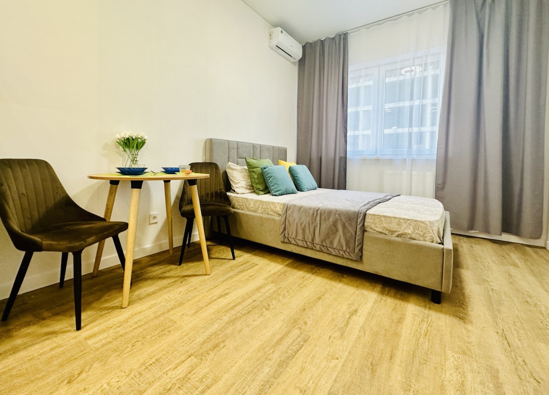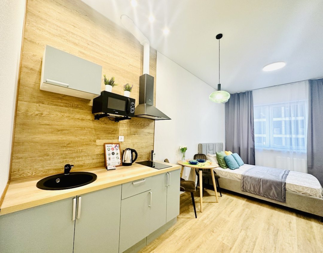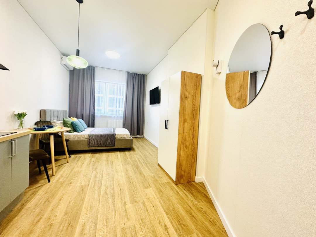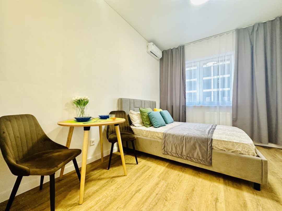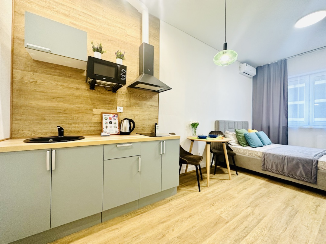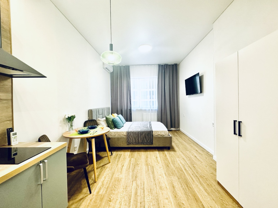 Уютная квартира-студия в Центре города и развитой инфраструктурой. В апартаментах есть вся необходимая техника и мебель, Wi-fi, постельное белье, полотенца и посуда, т.е. все то, что необходимо для комфортной жизни гостей и обусловлено своей функциональностью: для бизнес-путешественников с деловым визитом; в командировку; для семейных пар и с детьми; или просто, желая провести романтический вечер.